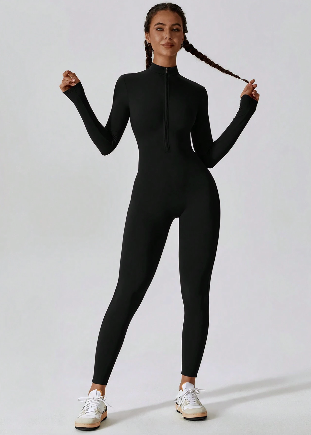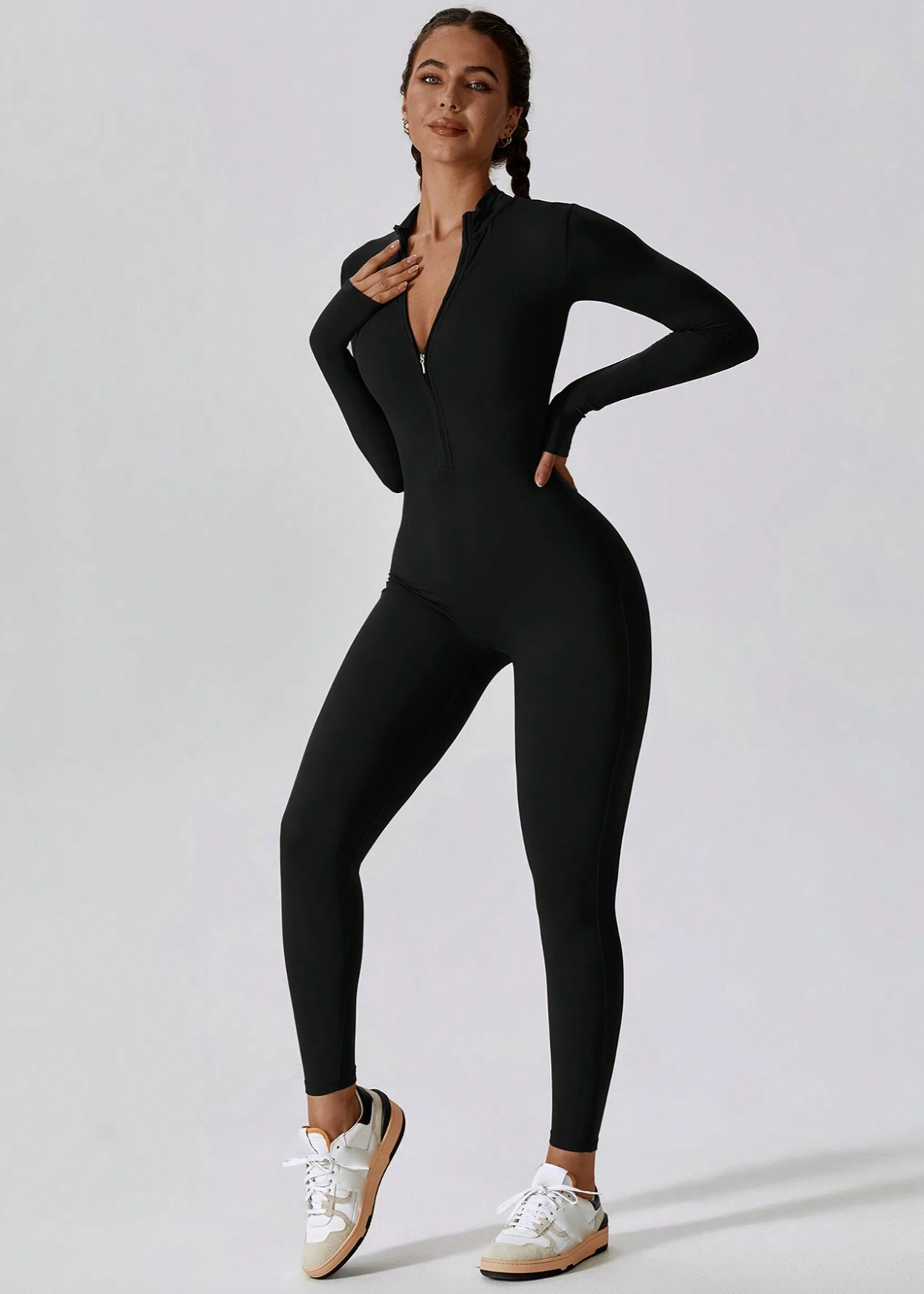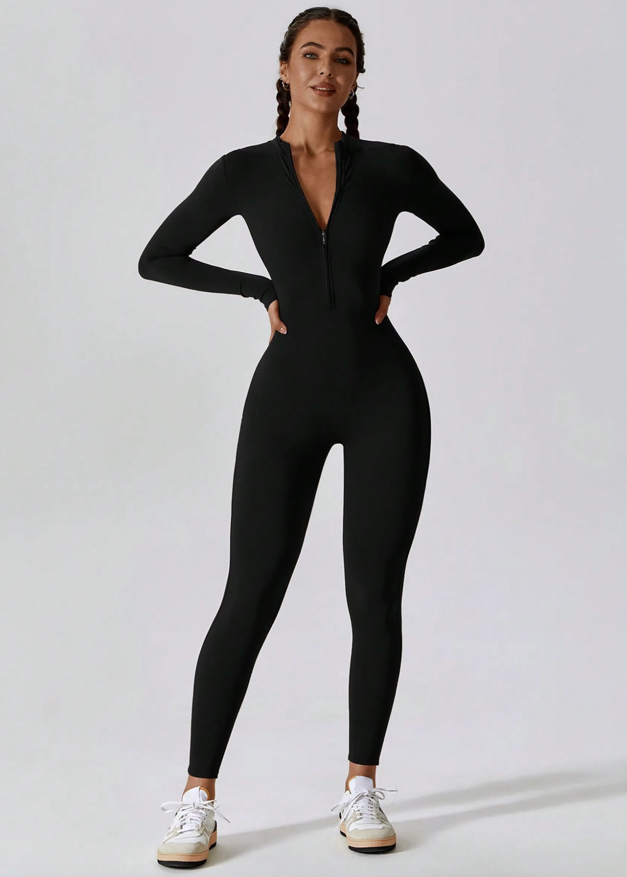 Un indispensable de la garde-robe moderne, cette combinaison une pièce incarne parfaitement l’équilibre entre style et confort. Sa coupe ajustée met en valeur les courbes avec élégance, tandis que son zip frontal pratique et séduisant apporte une touche d’originalité.