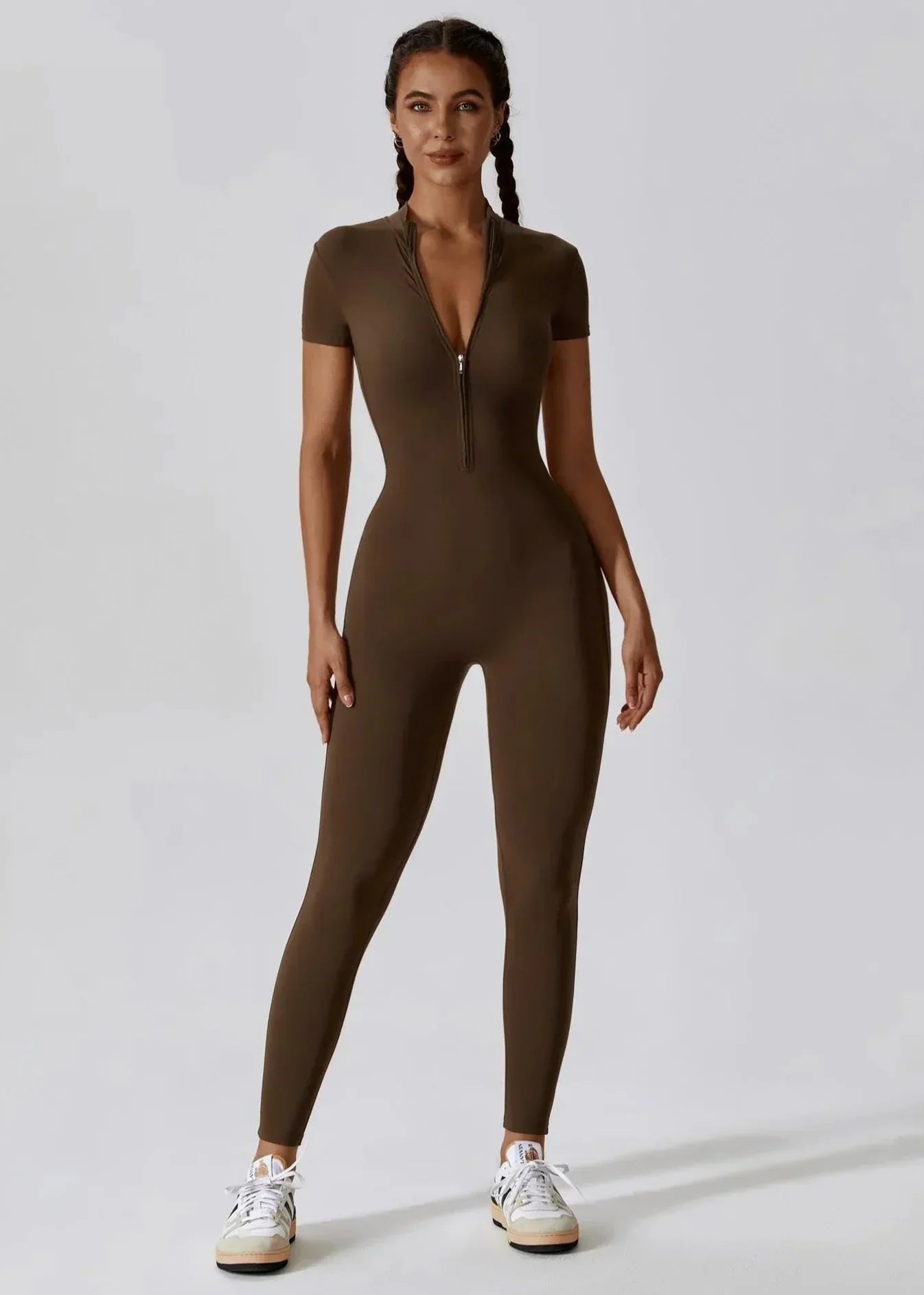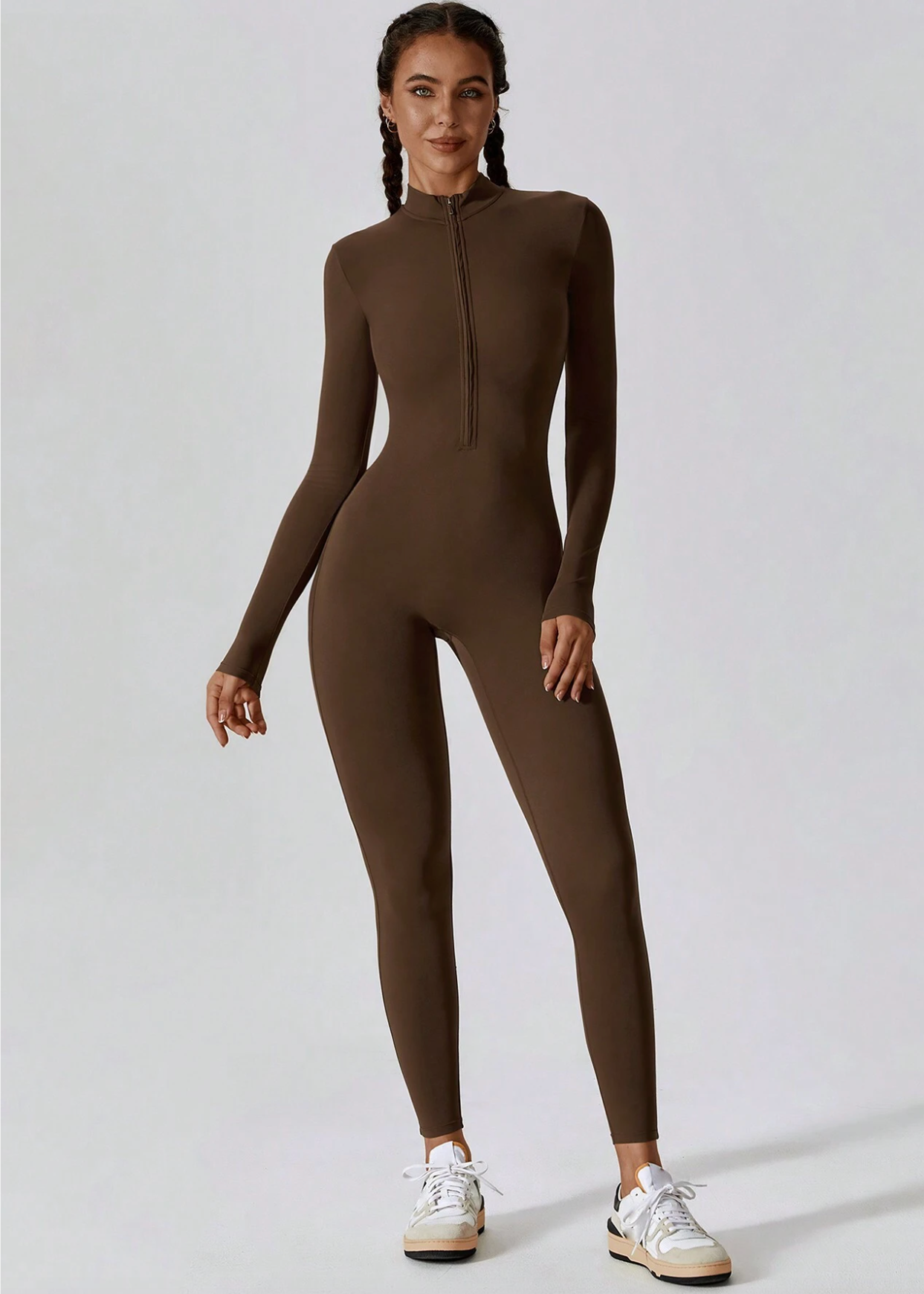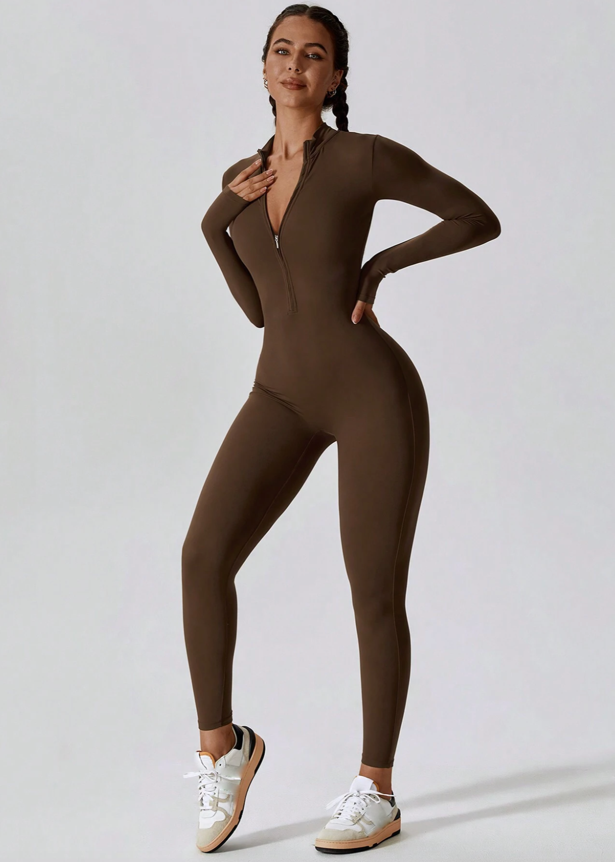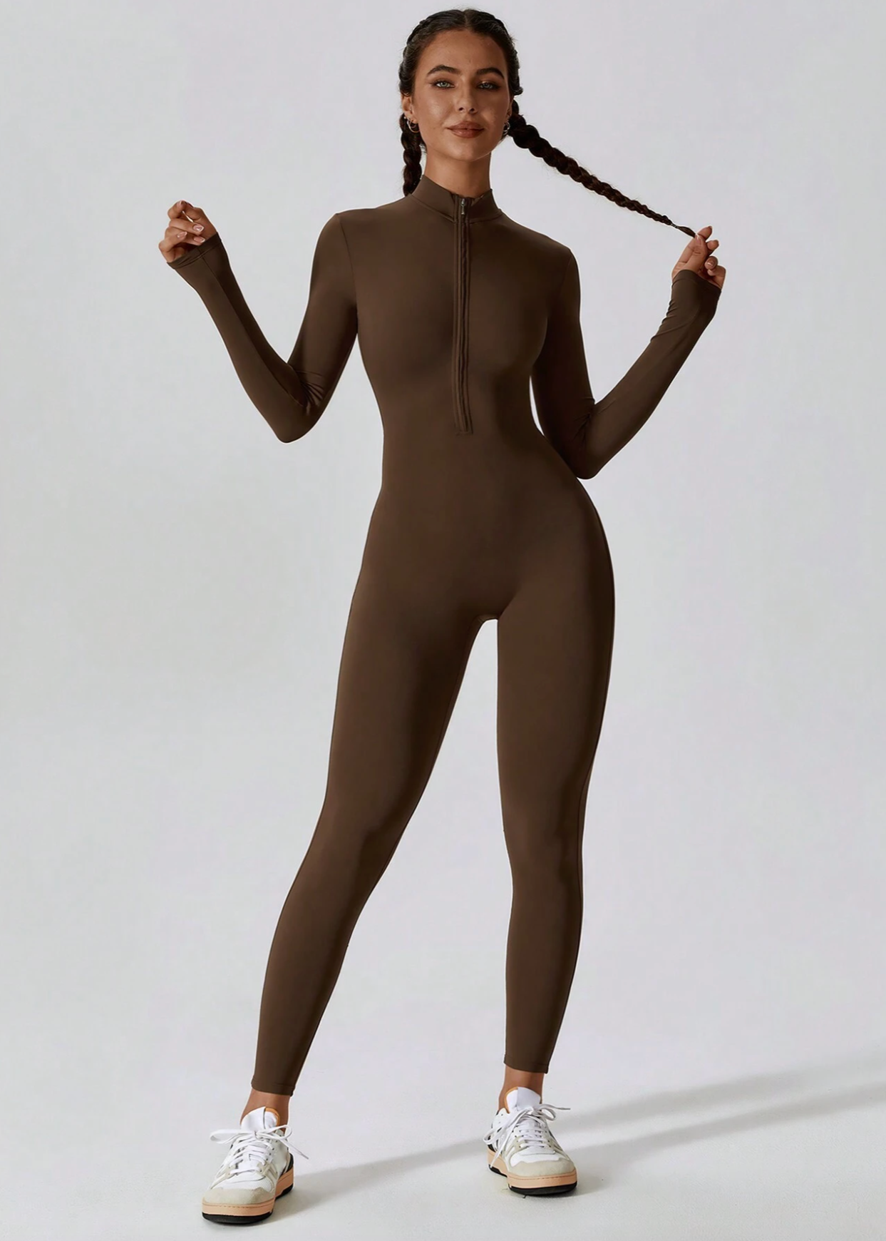 Un indispensable de la garde-robe moderne, cette combinaison une pièce incarne parfaitement l’équilibre entre style et confort. Sa coupe ajustée met en valeur les courbes avec élégance, tandis que son zip frontal pratique et séduisant apporte une touche d’originalité.